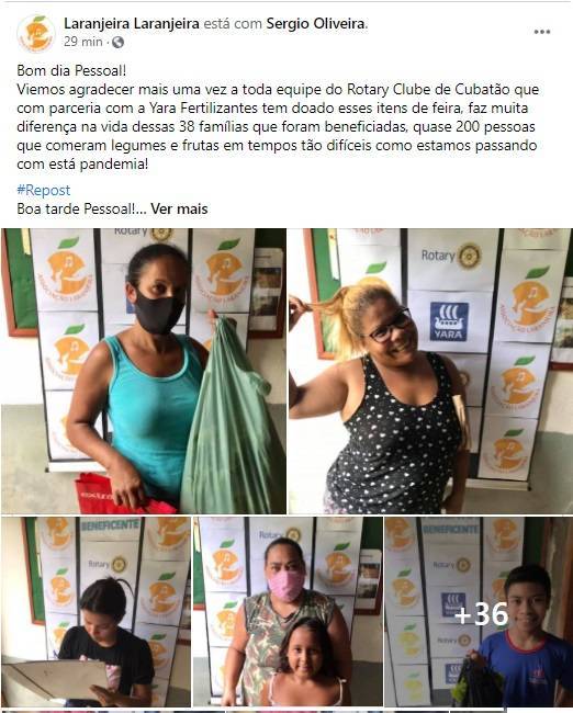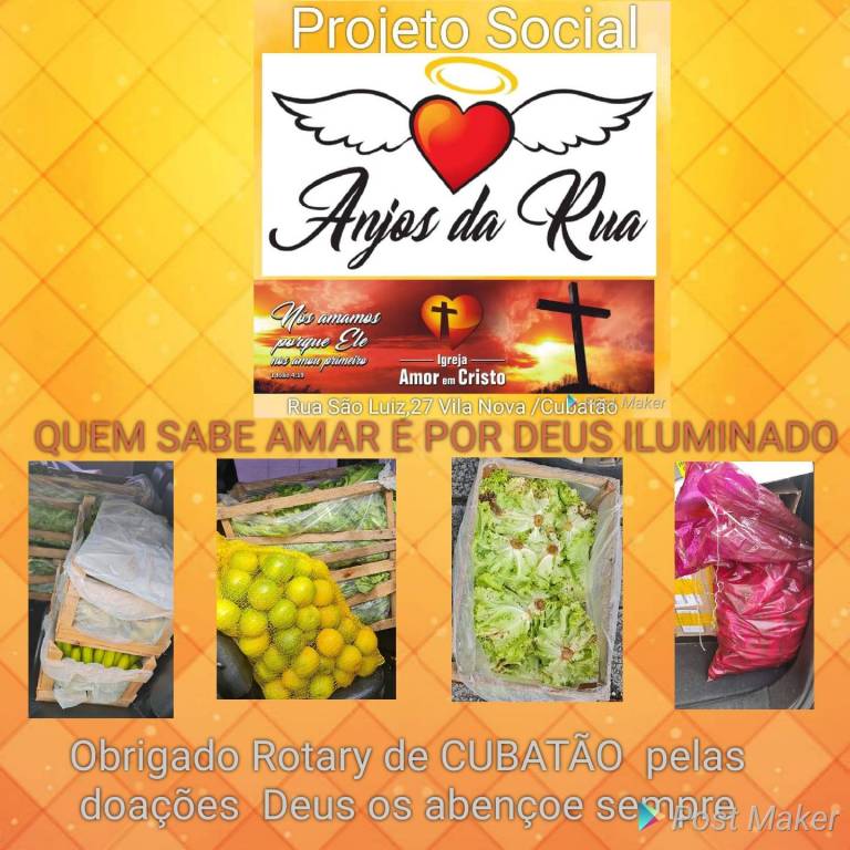 O Rotary Club de Cubatão, por ser uma instituição de credibilidade no município, teve o privilégio de ser escolhido pela empresa Yara Fertilizantes para organizar e distribuir frutas, legumes e verduras para as famílias de maior vulnerabilidade social da nossa cidade.
