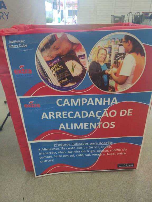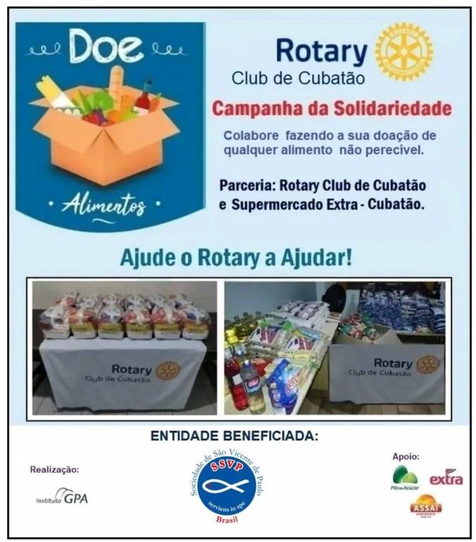 Neste sábado (10/05), em mais uma AÇÃO, voluntários do Rotary Club de Cubatão e da Sociedade São Vicente de Paulo estiveram participando da CAMPANHA DA SOLIDARIEDADE 2025 - GPA/Rotary, arrecadando Alimentos destinados às famílias em situações de vulnerabilidade social, no Mercado Extra da avenida 9 de Abril – Loja 1740 - Centro.