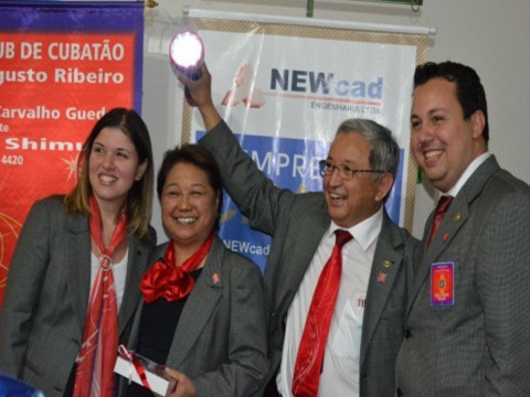 O governador Hiroshi Shimuta, ao lado de Suma, sua esposa, deixou sua mensagem alegre e cativante, parabenizando o clube pelas excelentes ações realizadas no ano Transformador e mostrou-se confiante quanto ao empenho do presidente Felipe Ribeiro, que com certeza saberá fazer o Rotary Club de Cubatão brilhar, afirmou Shimuta.