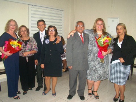 Maria Cecília Mesquita, apadrinhada pela companheira Jeanette Costa Dias e Carla Rodrigues, apadrinhada pelo companheiro Anfrísio Honório dos Santos, tomaram posse como rotarianas e Iara Guasti foi recebida como novo membro da Casa da Amizade de Cubatão.